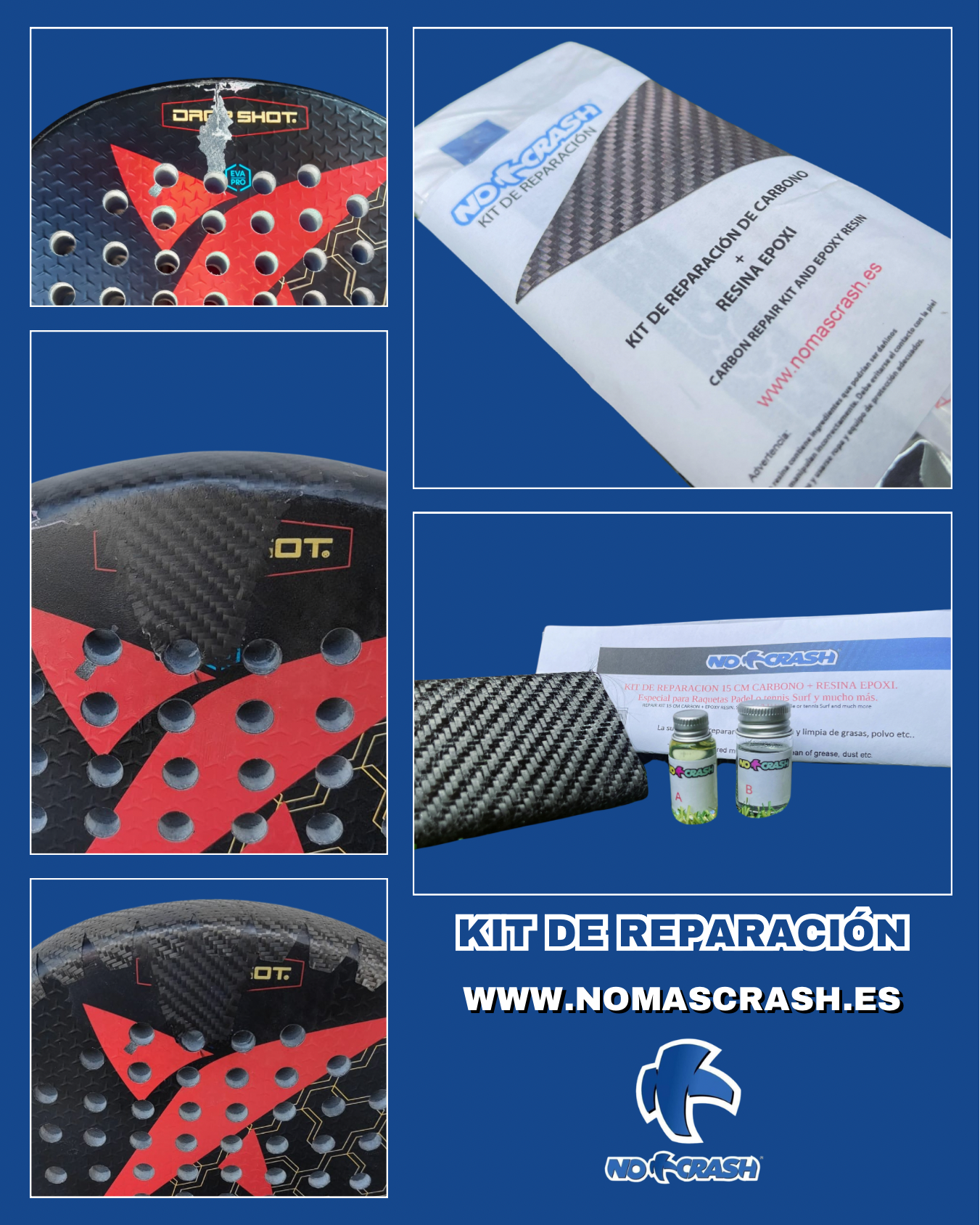 Kit de Reparación Carbono Profesional No+Crash – Pádel, Surf y Bicicletas | Resina + Fibra 3K